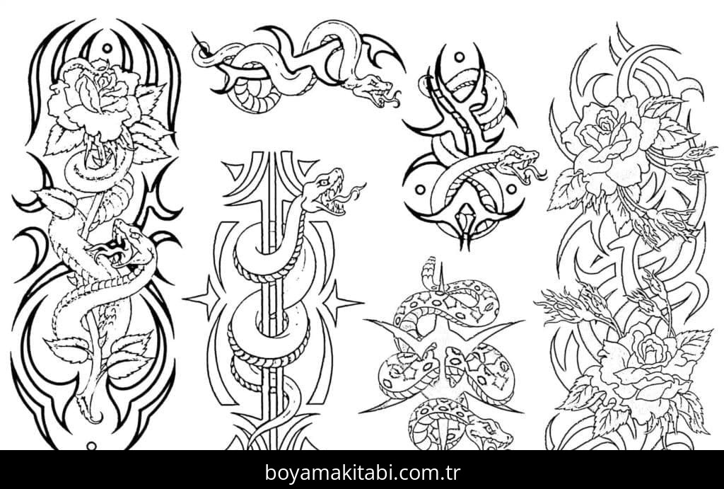 Dövme temalı bu boyama sayfası çocuklar için renkli çizimler ve okul öncesi bir etkinlik sunar. Ücretsiz olarak indirip yazdırabilir, evde keyifli bir boyama zamanı oluşturabilirsiniz.