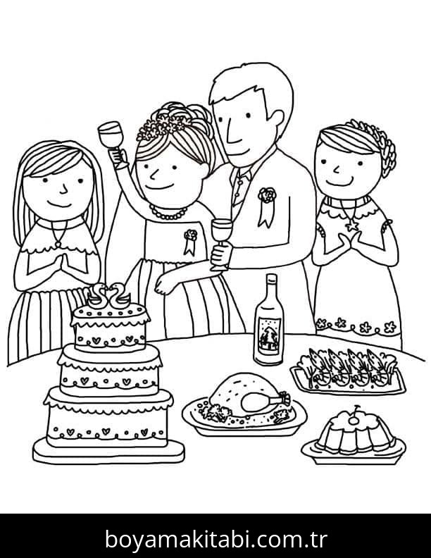 Düğün temalı bu boyama sayfası çocuklar için basit çizim ve kolay boyama bir etkinlik sunar. Ücretsiz olarak indirip yazdırabilir, evde keyifli bir boyama zamanı oluşturabilirsiniz.