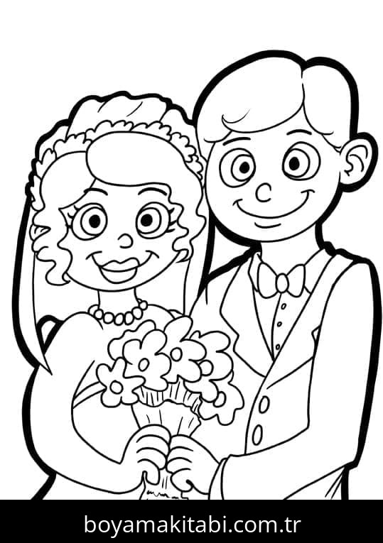 Düğün temalı bu boyama sayfası çocuklar için sevimli karakter ve sanatsal çalışma bir etkinlik sunar. Ücretsiz olarak indirip yazdırabilir, evde keyifli bir boyama zamanı oluşturabilirsiniz.