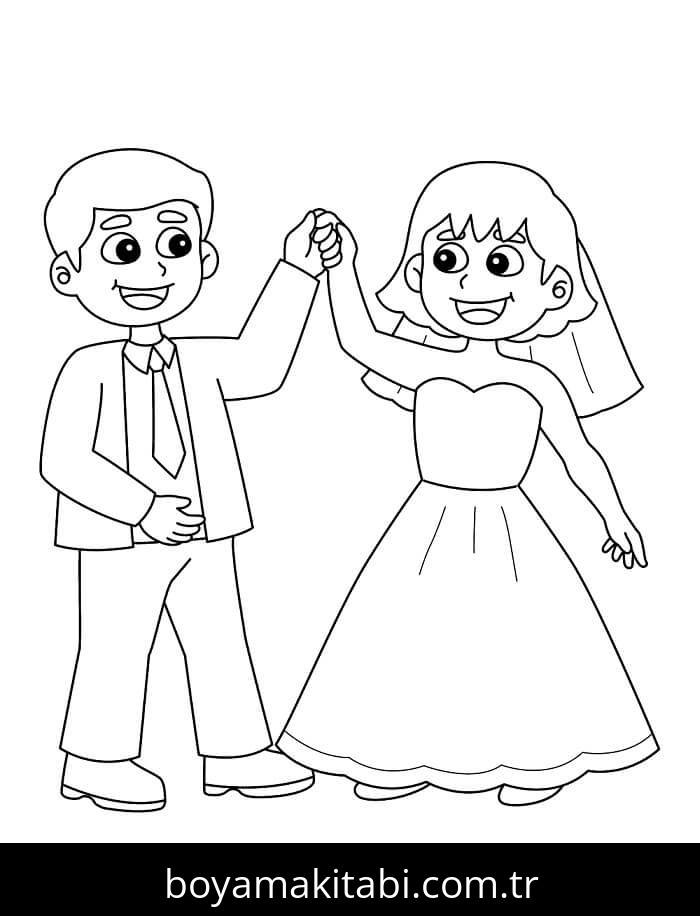 Düğün temalı bu boyama sayfası çocuklar için çizgi film temalı ve basit çizim bir etkinlik sunar. Ücretsiz olarak indirip yazdırabilir, evde keyifli bir boyama zamanı oluşturabilirsiniz.