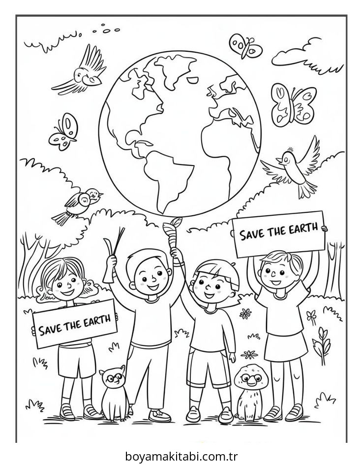 Dünya temalı bu boyama sayfası çocuklar için yaratıcılığı geliştirir ve keyifli zaman bir etkinlik sunar. Ücretsiz olarak indirip yazdırabilir, evde keyifli bir boyama zamanı oluşturabilirsiniz.