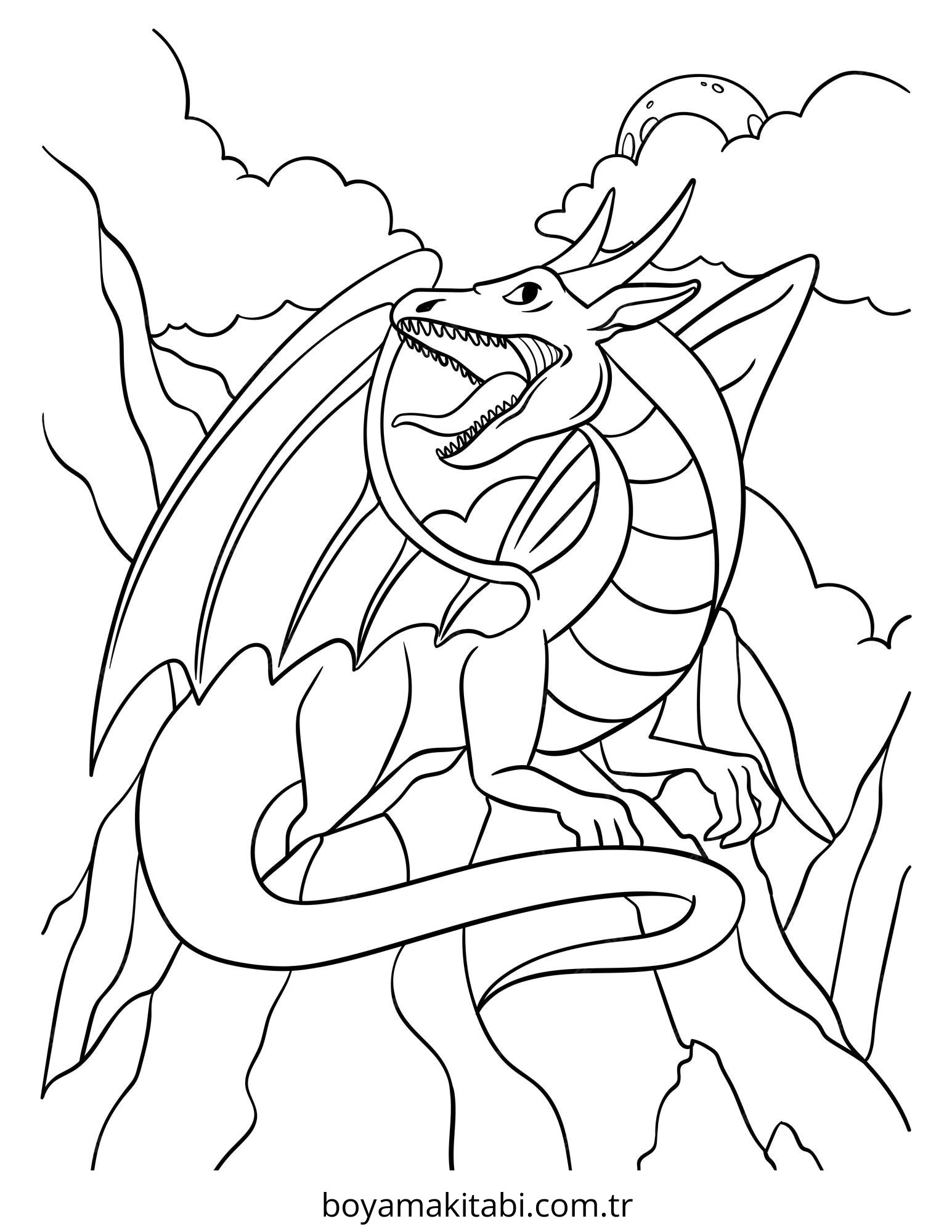 Ejderha temalı bu boyama sayfası çocuklar için keyifli zaman ve renkli çizimler bir etkinlik sunar. Ücretsiz olarak indirip yazdırabilir, evde keyifli bir boyama zamanı oluşturabilirsiniz.