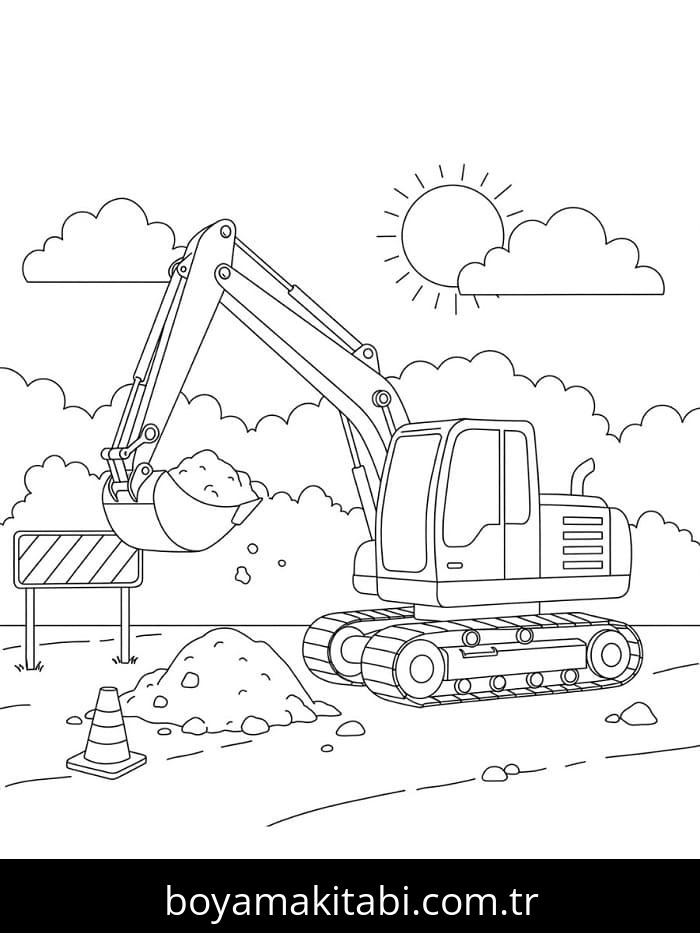 Ekskavatör temalı bu boyama sayfası çocuklar için basit çizim ve kolay boyama bir etkinlik sunar. Ücretsiz olarak indirip yazdırabilir, evde keyifli bir boyama zamanı oluşturabilirsiniz.