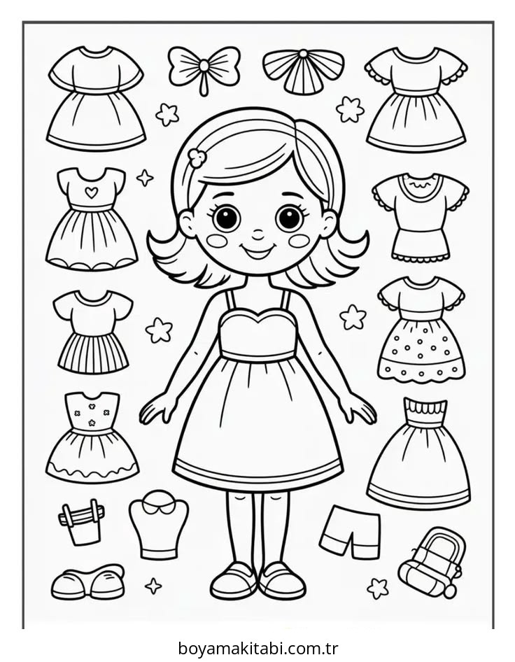Elbise temalı bu boyama sayfası çocuklar için renkli çizimler ve okul öncesi bir etkinlik sunar. Ücretsiz olarak indirip yazdırabilir, evde keyifli bir boyama zamanı oluşturabilirsiniz.