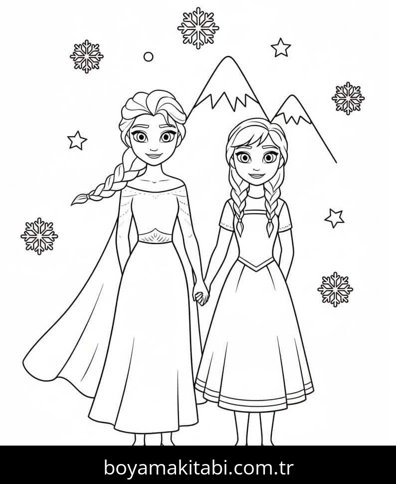 Elsa Ve Anna temalı bu boyama sayfası çocuklar için boyama etkinliği ve çocuk aktivitesi bir etkinlik sunar. Ücretsiz olarak indirip yazdırabilir, evde keyifli bir boyama zamanı oluşturabilirsiniz.