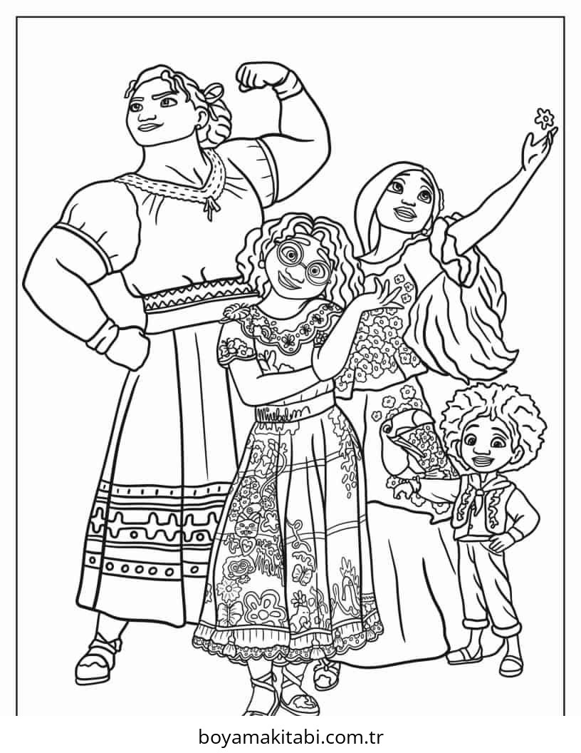 Encanto temalı bu boyama sayfası çocuklar için yaratıcılık ve eğlenceli etkinlik bir etkinlik sunar. Ücretsiz olarak indirip yazdırabilir, evde keyifli bir boyama zamanı oluşturabilirsiniz.