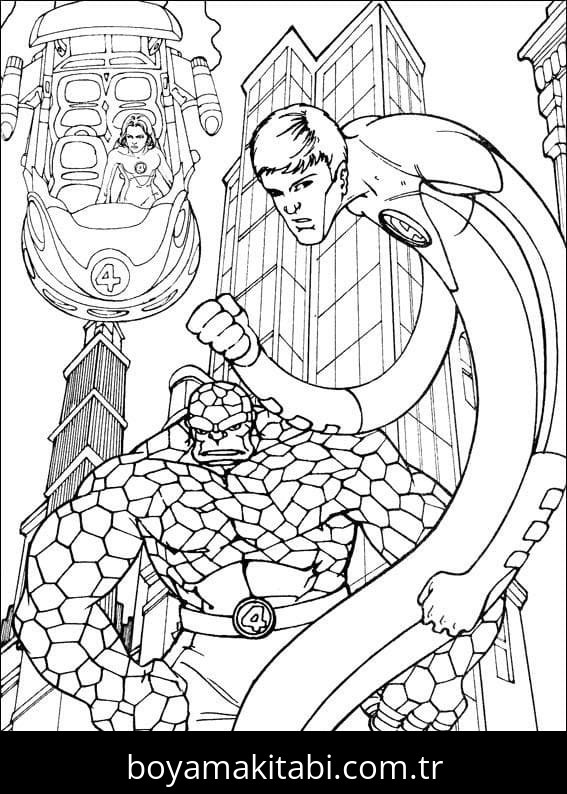 Fantastic Four temalı bu boyama sayfası çocuklar için eğitici aktivite ve yaratıcılık bir etkinlik sunar. Ücretsiz olarak indirip yazdırabilir, evde keyifli bir boyama zamanı oluşturabilirsiniz.