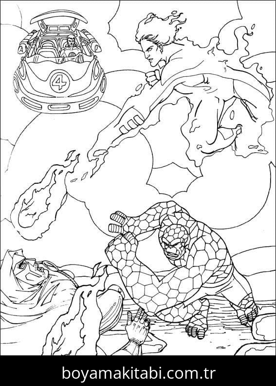 Fantastic Four temalı bu boyama sayfası çocuklar için sanatsal çalışma ve çocuklar için bir etkinlik sunar. Ücretsiz olarak indirip yazdırabilir, evde keyifli bir boyama zamanı oluşturabilirsiniz.