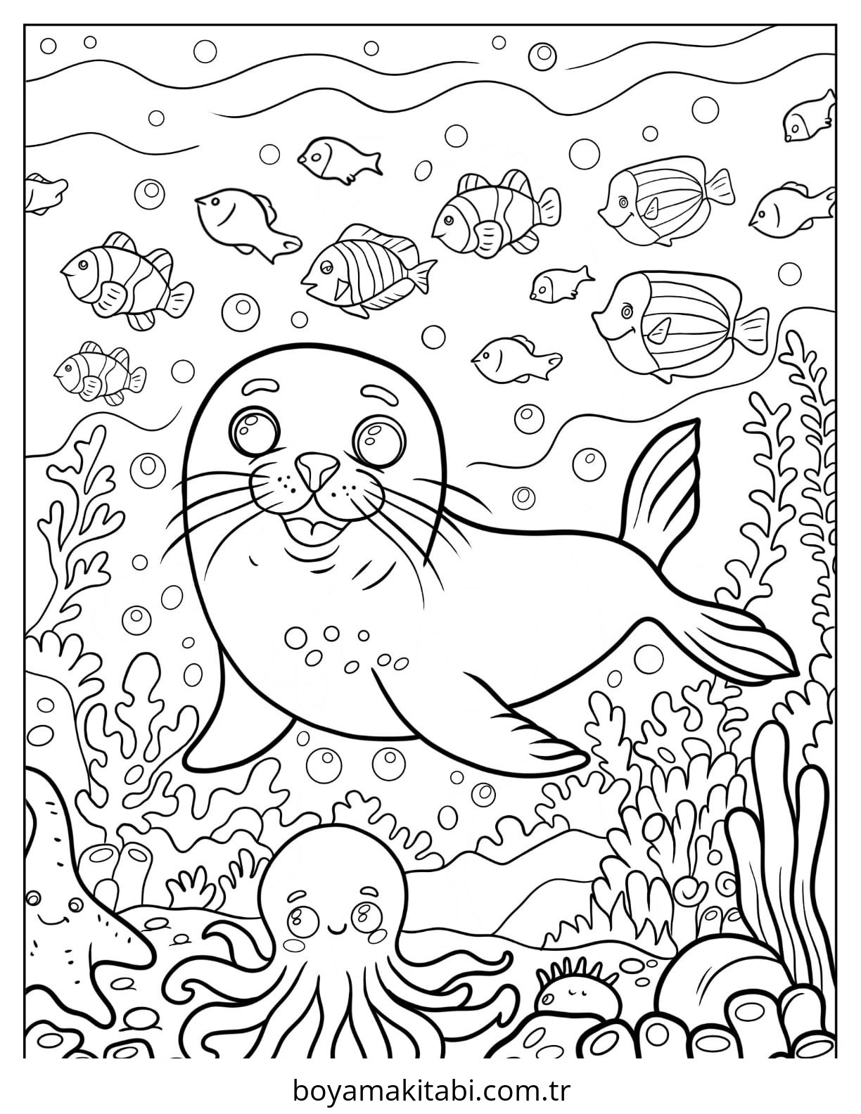 Fok temalı bu boyama sayfası çocuklar için PDF indir ve sevimli karakter bir etkinlik sunar. Ücretsiz olarak indirip yazdırabilir, evde keyifli bir boyama zamanı oluşturabilirsiniz.