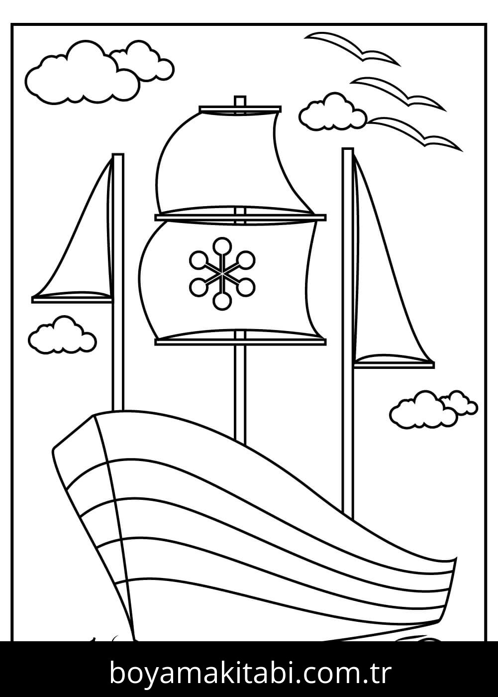 Gemi temalı bu boyama sayfası çocuklar için PDF indir ve sevimli karakter bir etkinlik sunar. Ücretsiz olarak indirip yazdırabilir, evde keyifli bir boyama zamanı oluşturabilirsiniz.
