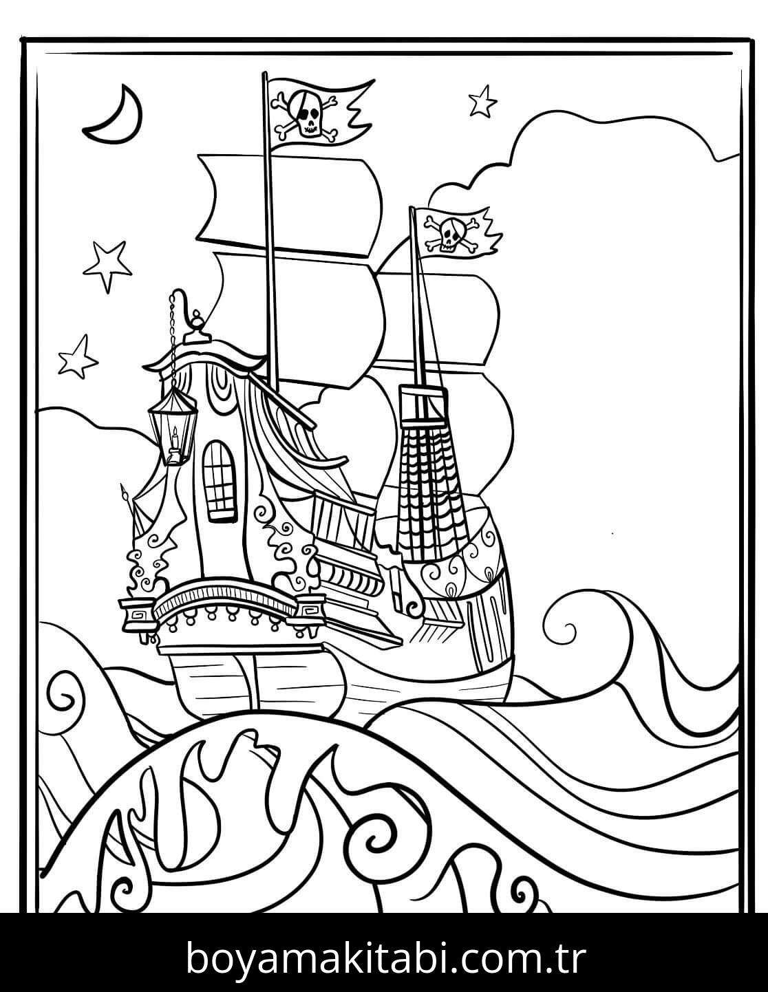 Gemi temalı bu boyama sayfası çocuklar için sevimli karakter ve sanatsal çalışma bir etkinlik sunar. Ücretsiz olarak indirip yazdırabilir, evde keyifli bir boyama zamanı oluşturabilirsiniz.