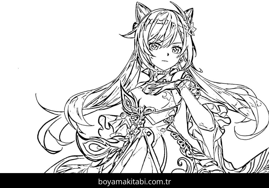 Genshin Impact temalı bu boyama sayfası çocuklar için boyama çalışması ve yaratıcılığı geliştirir bir etkinlik sunar. Ücretsiz olarak indirip yazdırabilir, evde keyifli bir boyama zamanı oluşturabilirsiniz.
