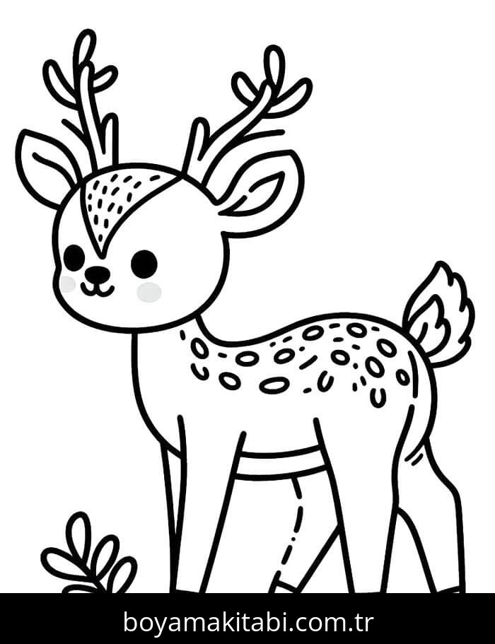 Geyik temalı bu boyama sayfası çocuklar için çocuklar için ve çizgi film temalı bir etkinlik sunar. Ücretsiz olarak indirip yazdırabilir, evde keyifli bir boyama zamanı oluşturabilirsiniz.