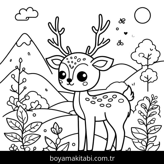 Geyik temalı bu boyama sayfası çocuklar için keyifli zaman ve renkli çizimler bir etkinlik sunar. Ücretsiz olarak indirip yazdırabilir, evde keyifli bir boyama zamanı oluşturabilirsiniz.