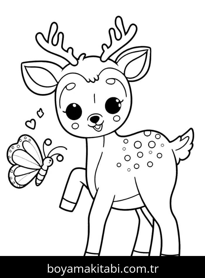 Geyik temalı bu boyama sayfası çocuklar için renkli çizimler ve okul öncesi bir etkinlik sunar. Ücretsiz olarak indirip yazdırabilir, evde keyifli bir boyama zamanı oluşturabilirsiniz.