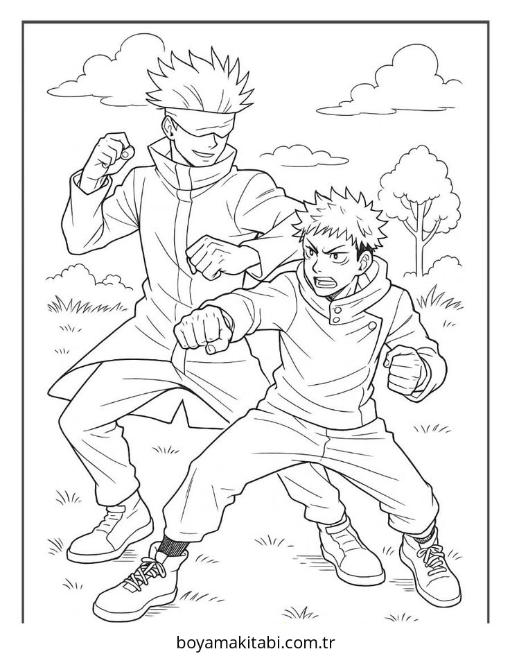 Gojo temalı bu boyama sayfası çocuklar için renkli çizimler ve okul öncesi bir etkinlik sunar. Ücretsiz olarak indirip yazdırabilir, evde keyifli bir boyama zamanı oluşturabilirsiniz.
