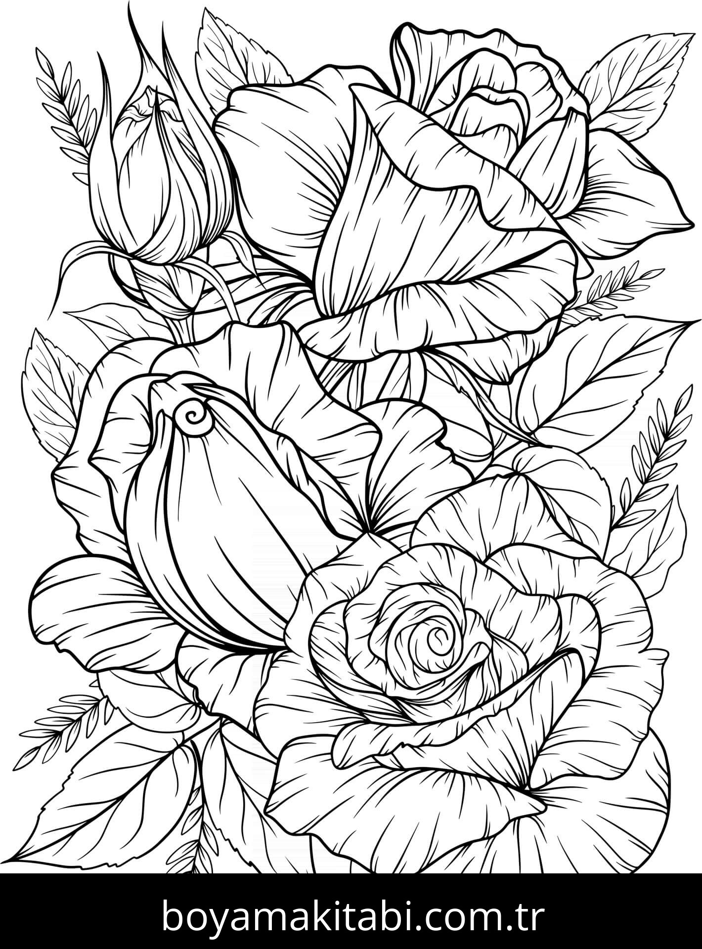 Gül temalı bu boyama sayfası çocuklar için eğitici aktivite ve yaratıcılık bir etkinlik sunar. Ücretsiz olarak indirip yazdırabilir, evde keyifli bir boyama zamanı oluşturabilirsiniz.