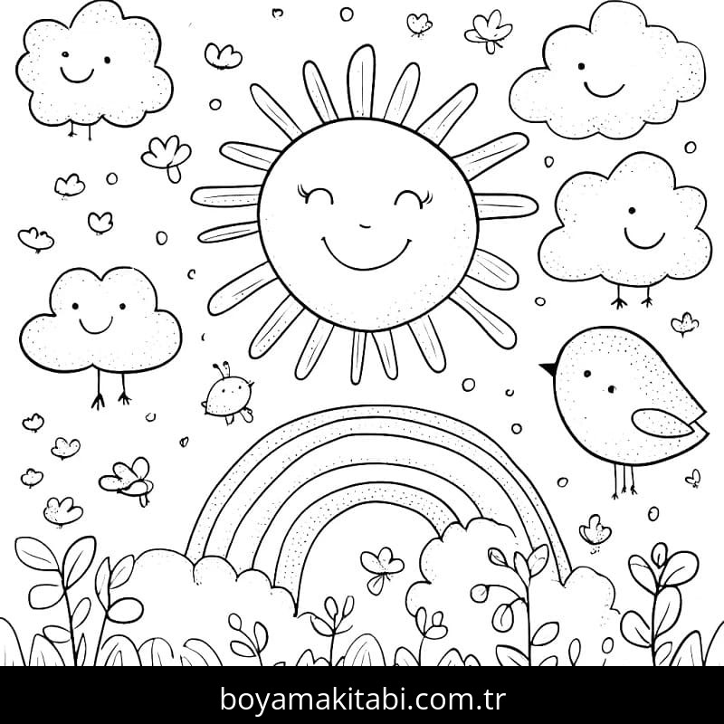 Güneş temalı bu boyama sayfası çocuklar için çocuklar için ve çizgi film temalı bir etkinlik sunar. Ücretsiz olarak indirip yazdırabilir, evde keyifli bir boyama zamanı oluşturabilirsiniz.