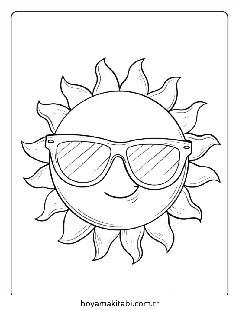 Güneş temalı bu boyama sayfası çocuklar için keyifli zaman ve renkli çizimler bir etkinlik sunar. Ücretsiz olarak indirip yazdırabilir, evde keyifli bir boyama zamanı oluşturabilirsiniz.