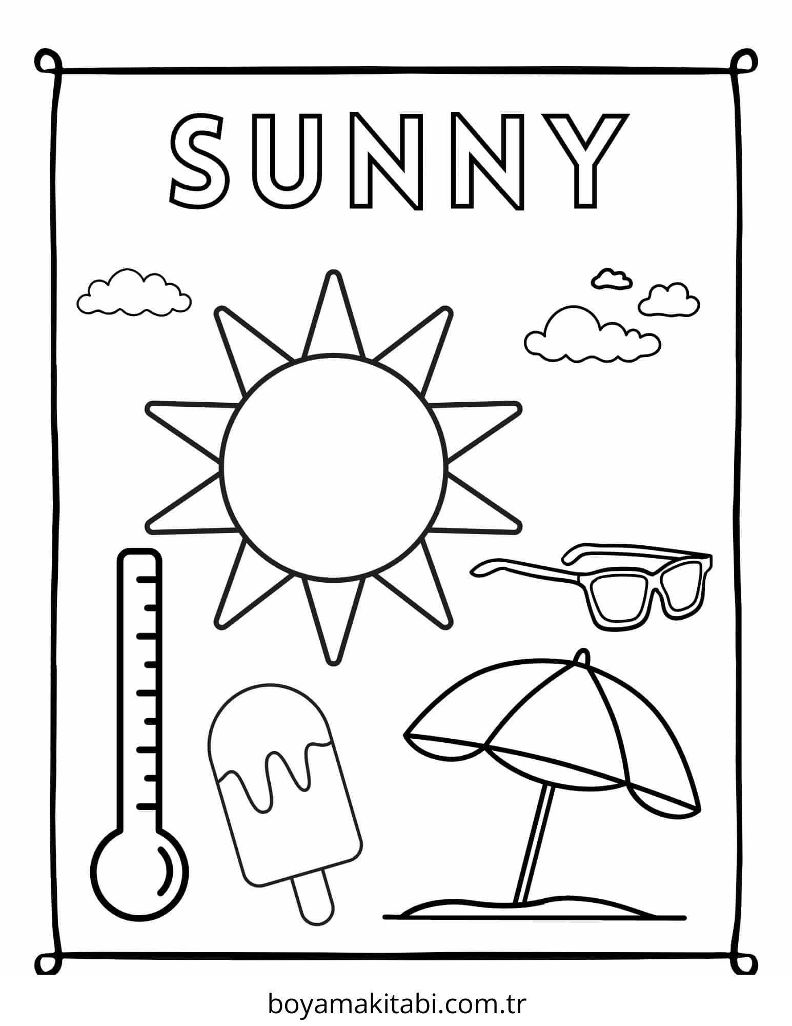 Hava Durumu temalı bu boyama sayfası çocuklar için boyama etkinliği ve çocuk aktivitesi bir etkinlik sunar. Ücretsiz olarak indirip yazdırabilir, evde keyifli bir boyama zamanı oluşturabilirsiniz.