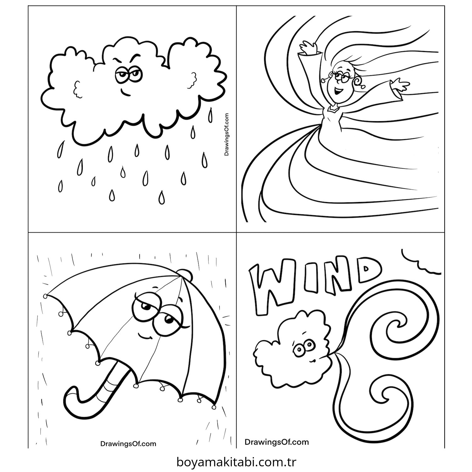 Hava Durumu temalı bu boyama sayfası çocuklar için el becerilerini geliştirir ve boyama çalışması bir etkinlik sunar. Ücretsiz olarak indirip yazdırabilir, evde keyifli bir boyama zamanı oluşturabilirsiniz.