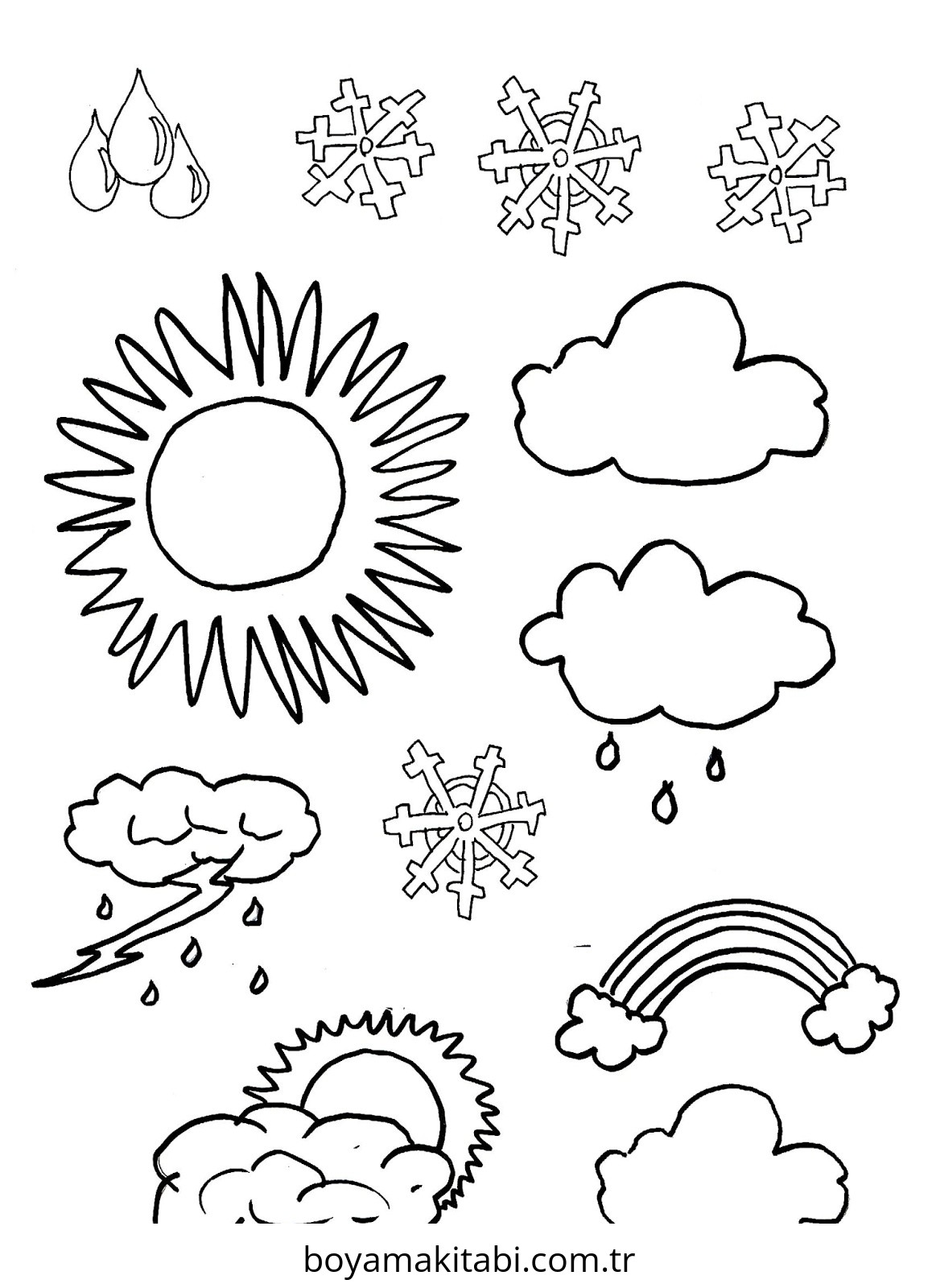 Hava Durumu temalı bu boyama sayfası çocuklar için yaratıcılığı geliştirir ve keyifli zaman bir etkinlik sunar. Ücretsiz olarak indirip yazdırabilir, evde keyifli bir boyama zamanı oluşturabilirsiniz.