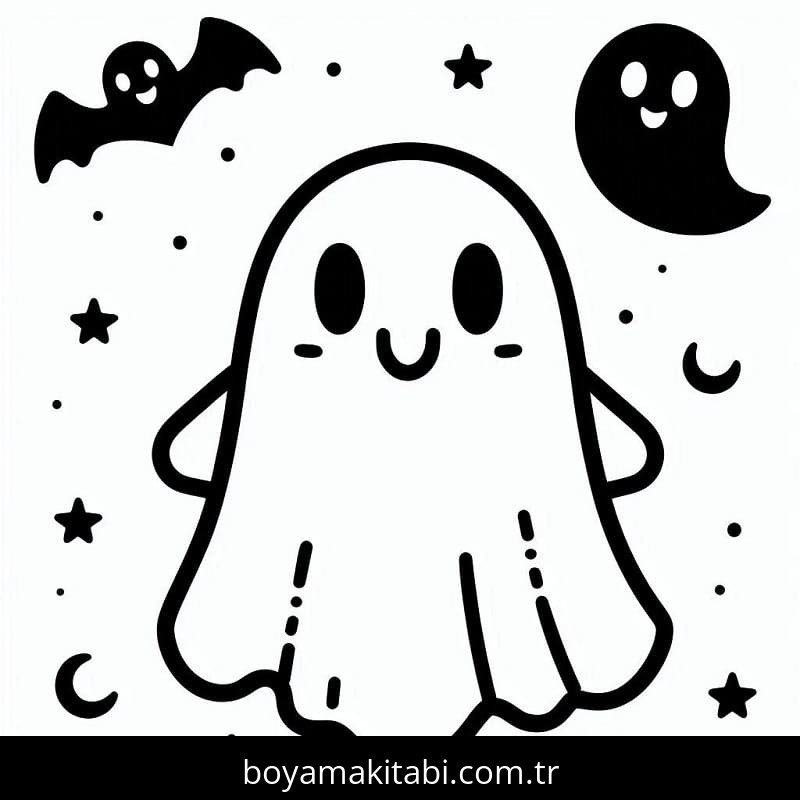 Hayalet temalı bu boyama sayfası çocuklar için el becerilerini geliştirir ve boyama çalışması bir etkinlik sunar. Ücretsiz olarak indirip yazdırabilir, evde keyifli bir boyama zamanı oluşturabilirsiniz.