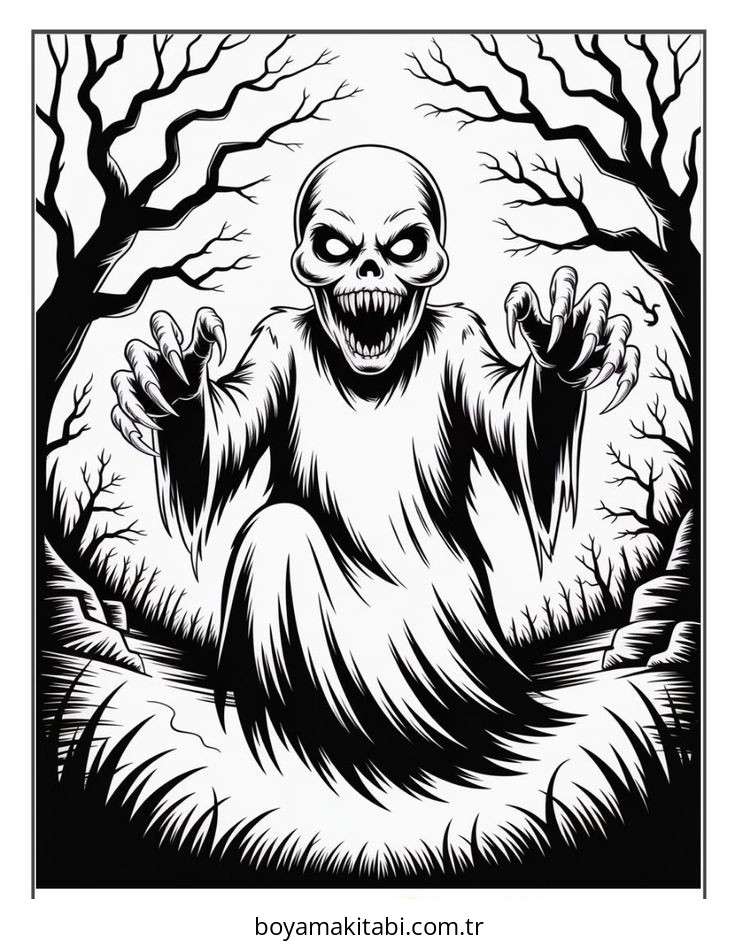 Hayalet temalı bu boyama sayfası çocuklar için kolay boyama ve eğitici aktivite bir etkinlik sunar. Ücretsiz olarak indirip yazdırabilir, evde keyifli bir boyama zamanı oluşturabilirsiniz.