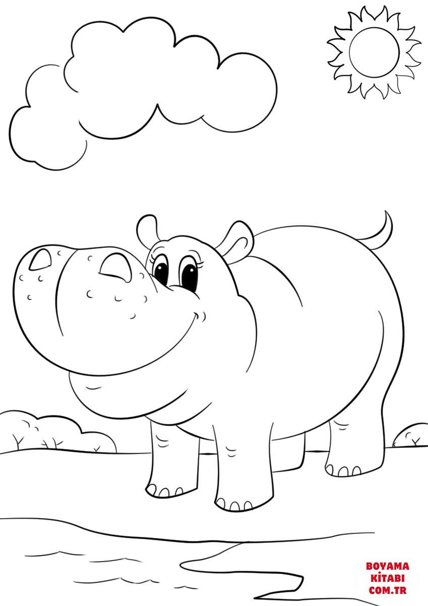 Hipopotam Boyama Sayfaları ve Eğlenceli Etkinlikler. Hipopotam Eğlenceli Boyama Sayfaları, Hipopotam boyama sayfası, Hippopotamus coloring page, modern, şirin, karakterli