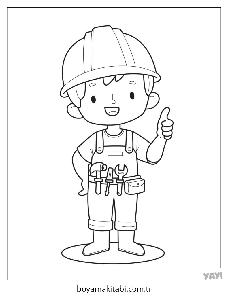 İnşaat İşçisi temalı bu boyama sayfası çocuklar için basit çizim ve kolay boyama bir etkinlik sunar. Ücretsiz olarak indirip yazdırabilir, evde keyifli bir boyama zamanı oluşturabilirsiniz.