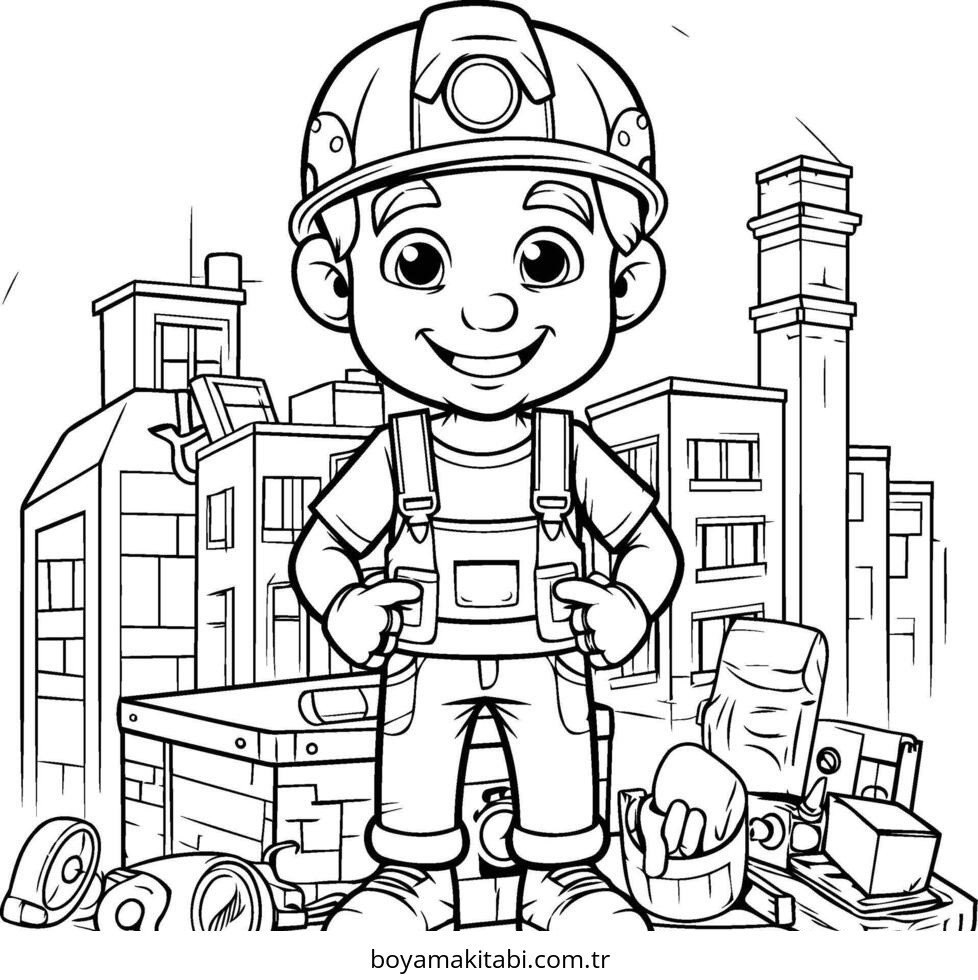 İnşaat İşçisi temalı bu boyama sayfası çocuklar için boyama çalışması ve yaratıcılığı geliştirir bir etkinlik sunar. Ücretsiz olarak indirip yazdırabilir, evde keyifli bir boyama zamanı oluşturabilirsiniz.