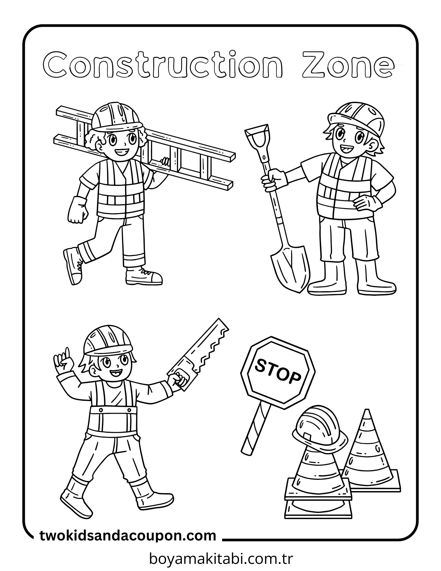 İnşaat İşçisi temalı bu boyama sayfası çocuklar için PDF indir ve sevimli karakter bir etkinlik sunar. Ücretsiz olarak indirip yazdırabilir, evde keyifli bir boyama zamanı oluşturabilirsiniz.