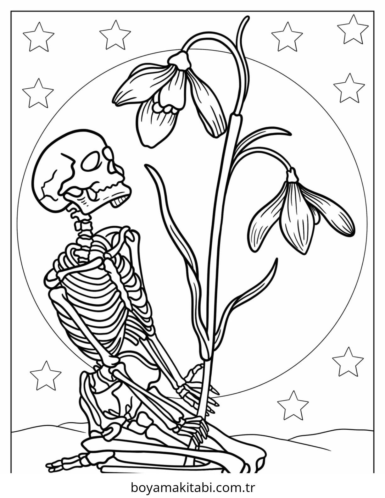 Iskelet temalı bu boyama sayfası çocuklar için ücretsiz yazdır ve boyama etkinliği bir etkinlik sunar. Ücretsiz olarak indirip yazdırabilir, evde keyifli bir boyama zamanı oluşturabilirsiniz.