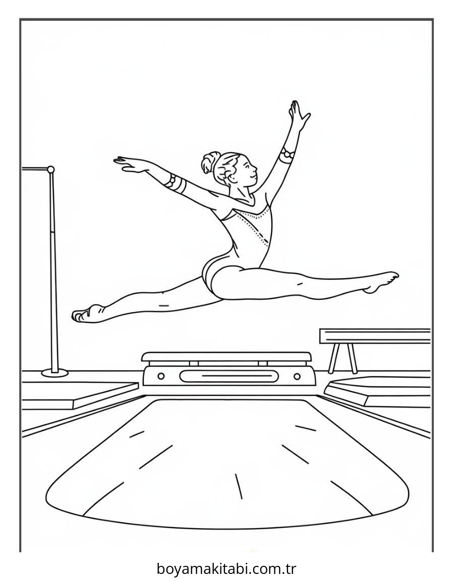 Jimnastik temalı bu boyama sayfası çocuklar için sevimli karakter ve sanatsal çalışma bir etkinlik sunar. Ücretsiz olarak indirip yazdırabilir, evde keyifli bir boyama zamanı oluşturabilirsiniz.