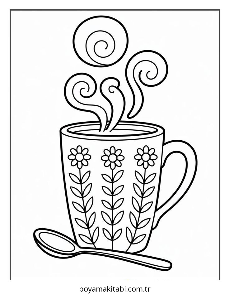 Kahve temalı bu boyama sayfası çocuklar için yaratıcılığı geliştirir ve keyifli zaman bir etkinlik sunar. Ücretsiz olarak indirip yazdırabilir, evde keyifli bir boyama zamanı oluşturabilirsiniz.