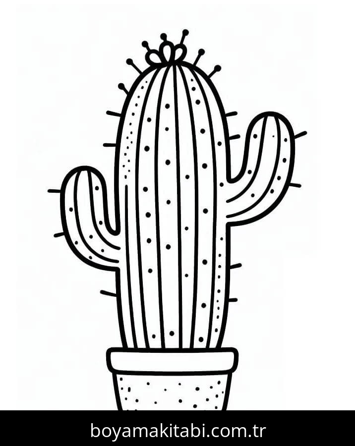 Kaktüs temalı bu boyama sayfası çocuklar için sanatsal çalışma ve çocuklar için bir etkinlik sunar. Ücretsiz olarak indirip yazdırabilir, evde keyifli bir boyama zamanı oluşturabilirsiniz.