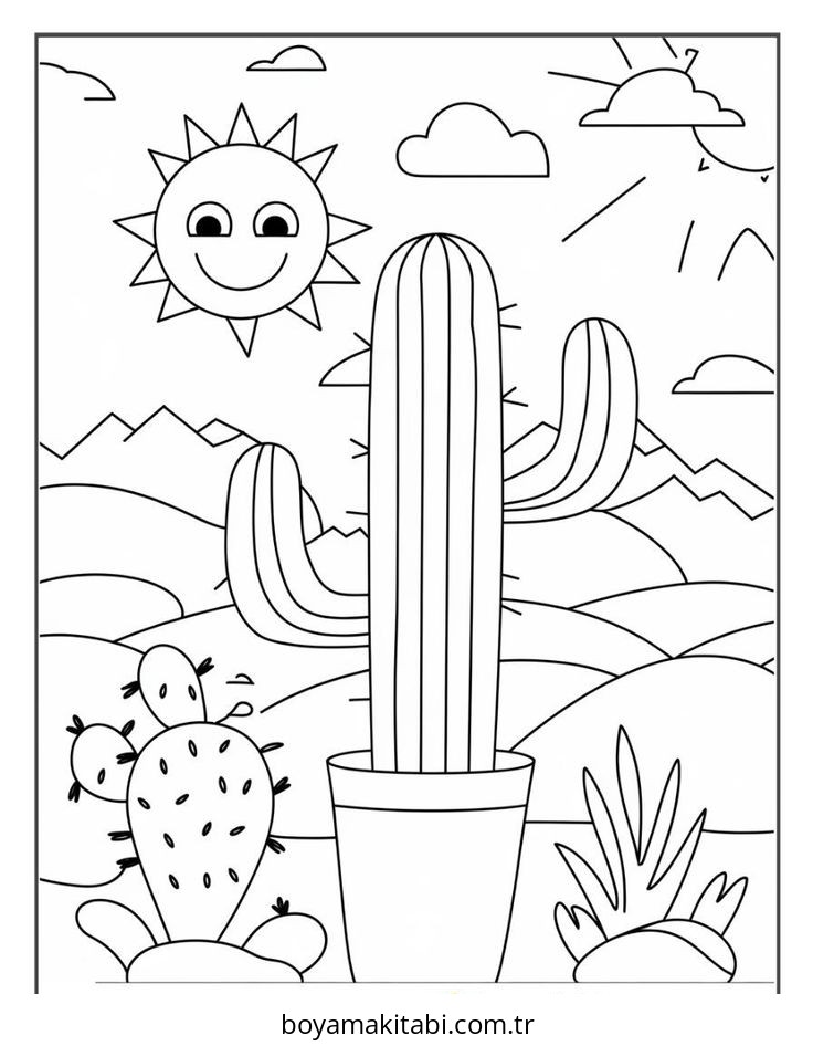 Kaktüs temalı bu boyama sayfası çocuklar için eğitici aktivite ve yaratıcılık bir etkinlik sunar. Ücretsiz olarak indirip yazdırabilir, evde keyifli bir boyama zamanı oluşturabilirsiniz.