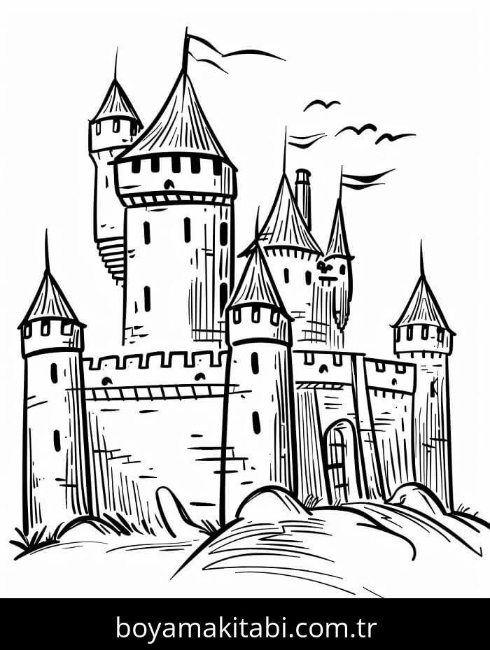 Kale temalı bu boyama sayfası çocuklar için yaratıcılığı geliştirir ve keyifli zaman bir etkinlik sunar. Ücretsiz olarak indirip yazdırabilir, evde keyifli bir boyama zamanı oluşturabilirsiniz.