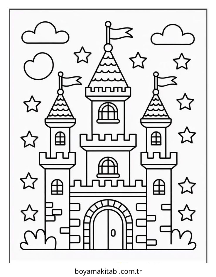 Kale temalı bu boyama sayfası çocuklar için renkli çizimler ve okul öncesi bir etkinlik sunar. Ücretsiz olarak indirip yazdırabilir, evde keyifli bir boyama zamanı oluşturabilirsiniz.