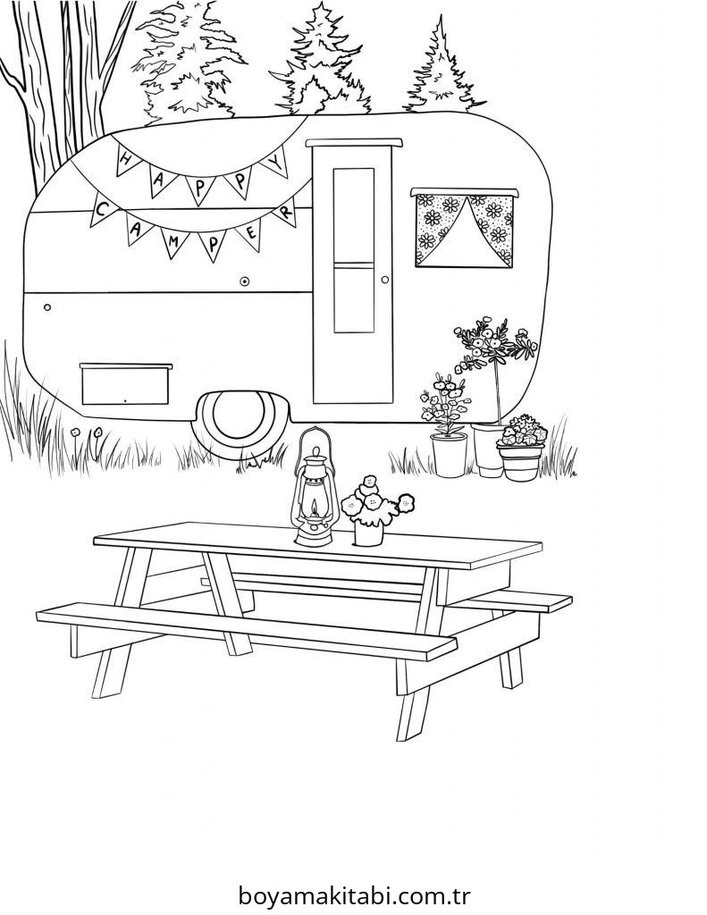 Kamp temalı bu boyama sayfası çocuklar için boyama etkinliği ve çocuk aktivitesi bir etkinlik sunar. Ücretsiz olarak indirip yazdırabilir, evde keyifli bir boyama zamanı oluşturabilirsiniz.