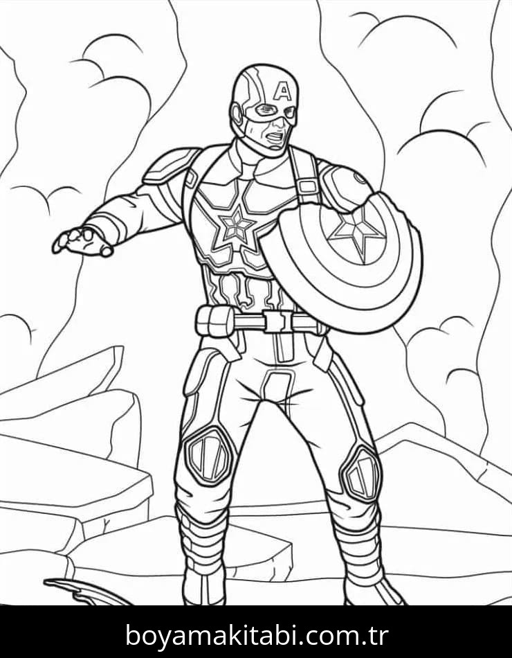 Kaptan Amerika temalı bu boyama sayfası çocuklar için çizgi film temalı ve basit çizim bir etkinlik sunar. Ücretsiz olarak indirip yazdırabilir, evde keyifli bir boyama zamanı oluşturabilirsiniz.