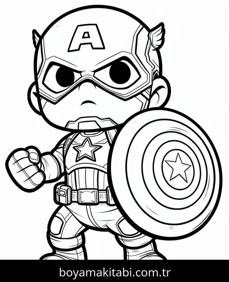 Kaptan Amerika temalı bu boyama sayfası çocuklar için keyifli zaman ve renkli çizimler bir etkinlik sunar. Ücretsiz olarak indirip yazdırabilir, evde keyifli bir boyama zamanı oluşturabilirsiniz.