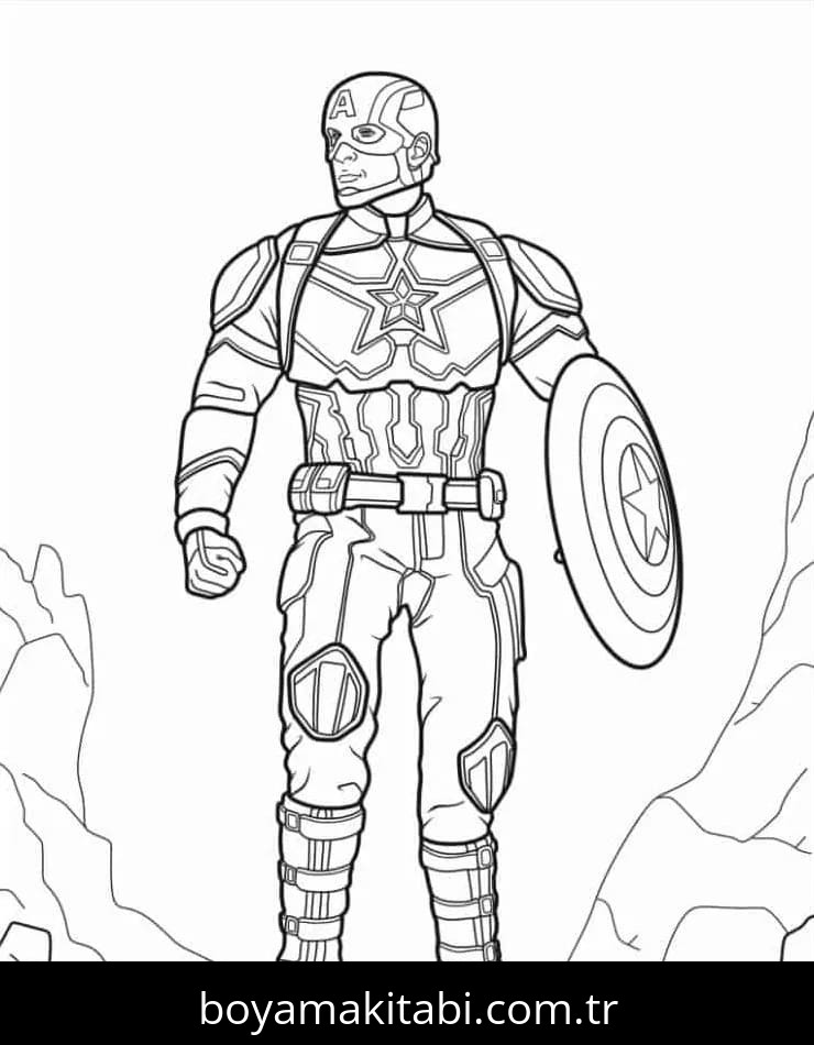 Kaptan Amerika temalı bu boyama sayfası çocuklar için boyama etkinliği ve çocuk aktivitesi bir etkinlik sunar. Ücretsiz olarak indirip yazdırabilir, evde keyifli bir boyama zamanı oluşturabilirsiniz.