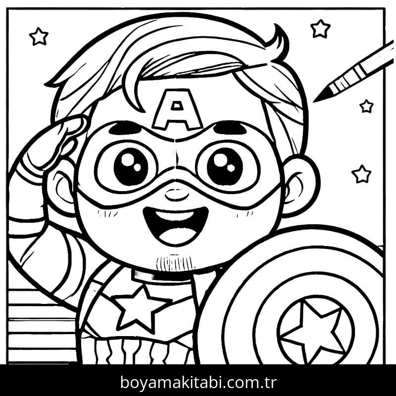 Kaptan Amerika temalı bu boyama sayfası çocuklar için boyama çalışması ve yaratıcılığı geliştirir bir etkinlik sunar. Ücretsiz olarak indirip yazdırabilir, evde keyifli bir boyama zamanı oluşturabilirsiniz.