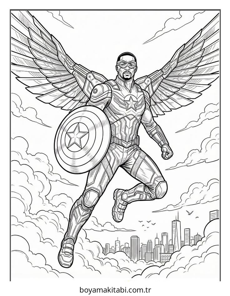 Kaptan Amerika temalı bu boyama sayfası çocuklar için yaratıcılığı geliştirir ve keyifli zaman bir etkinlik sunar. Ücretsiz olarak indirip yazdırabilir, evde keyifli bir boyama zamanı oluşturabilirsiniz.
