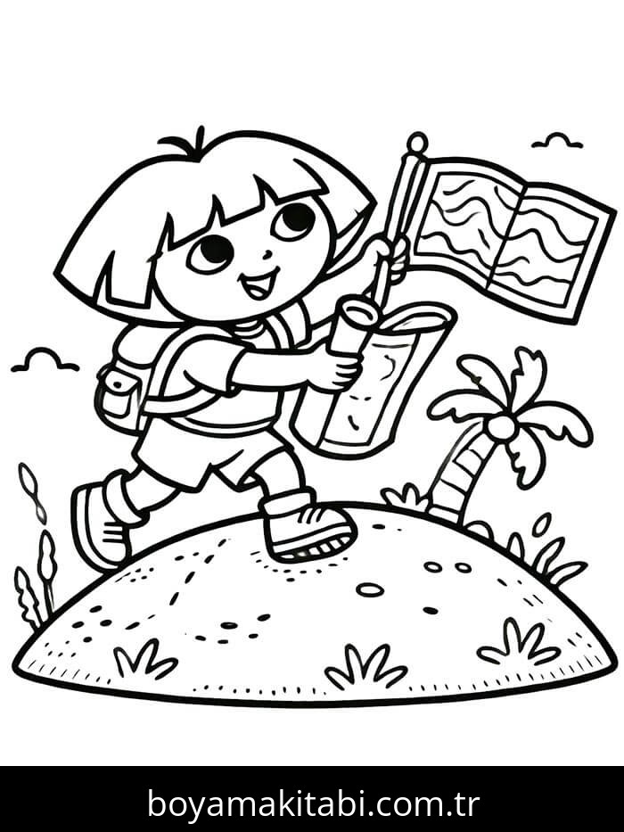 Kaşif Dora temalı bu boyama sayfası çocuklar için renkli çizimler ve okul öncesi bir etkinlik sunar. Ücretsiz olarak indirip yazdırabilir, evde keyifli bir boyama zamanı oluşturabilirsiniz.