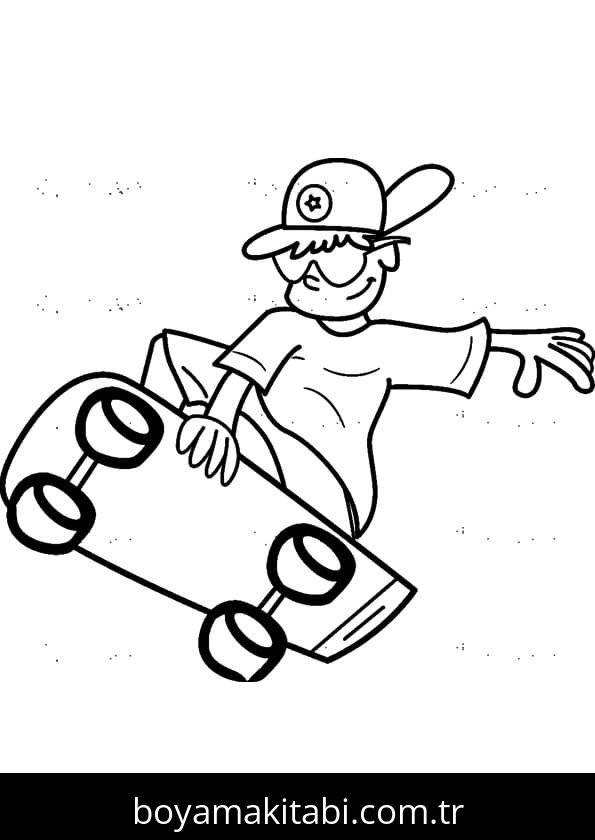 Kaykay temalı bu boyama sayfası çocuklar için çizgi film temalı ve basit çizim bir etkinlik sunar. Ücretsiz olarak indirip yazdırabilir, evde keyifli bir boyama zamanı oluşturabilirsiniz.