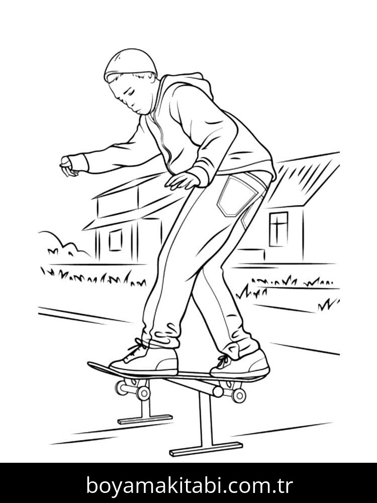 Kaykay temalı bu boyama sayfası çocuklar için basit çizim ve kolay boyama bir etkinlik sunar. Ücretsiz olarak indirip yazdırabilir, evde keyifli bir boyama zamanı oluşturabilirsiniz.