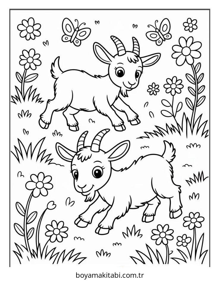 Keçi temalı bu boyama sayfası çocuklar için renkli çizimler ve okul öncesi bir etkinlik sunar. Ücretsiz olarak indirip yazdırabilir, evde keyifli bir boyama zamanı oluşturabilirsiniz.