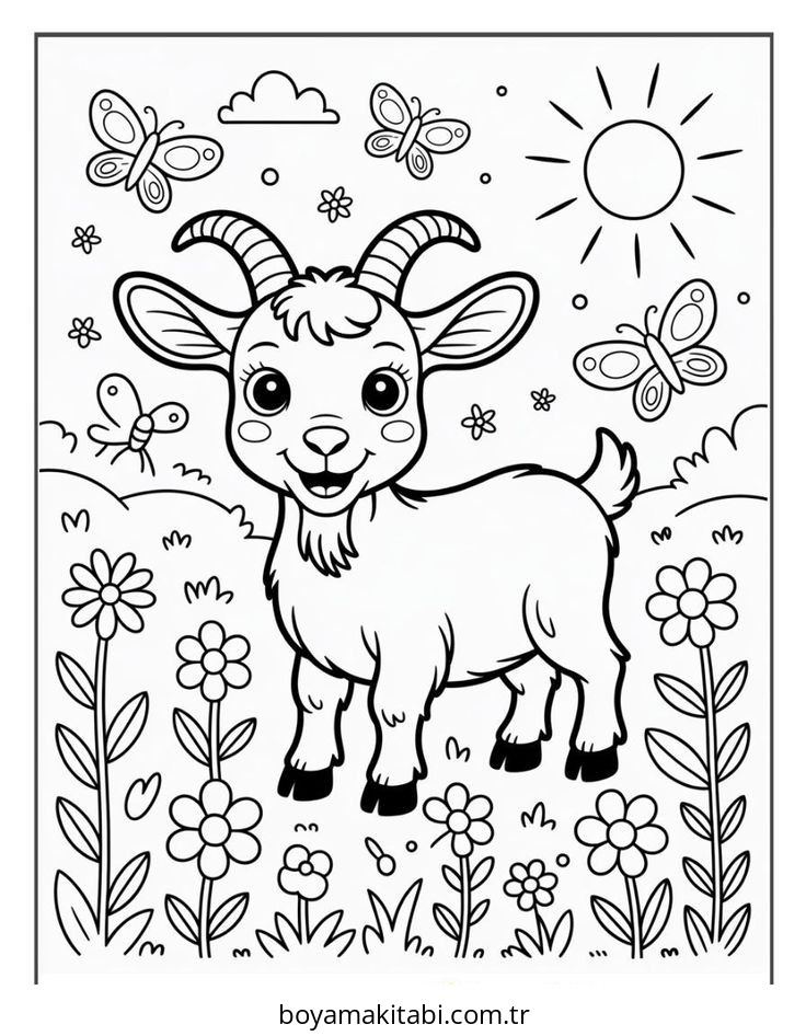 Keçi temalı bu boyama sayfası çocuklar için çocuklar için ve çizgi film temalı bir etkinlik sunar. Ücretsiz olarak indirip yazdırabilir, evde keyifli bir boyama zamanı oluşturabilirsiniz.